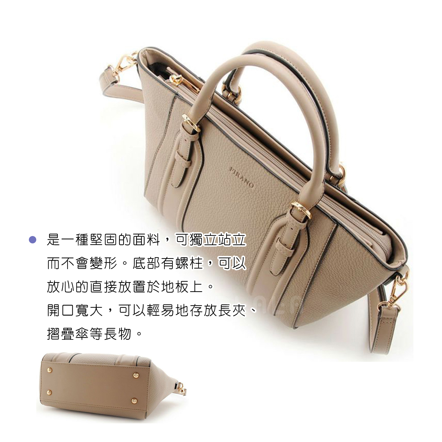 正面寬大,可以輕易地存放長錢包或摺疊傘等長物。