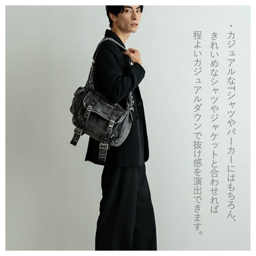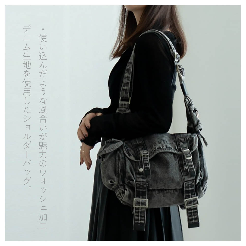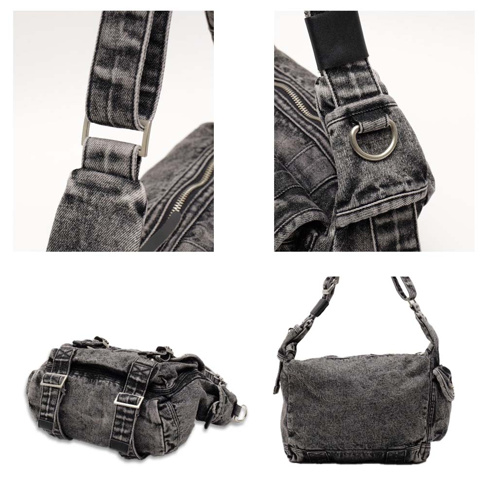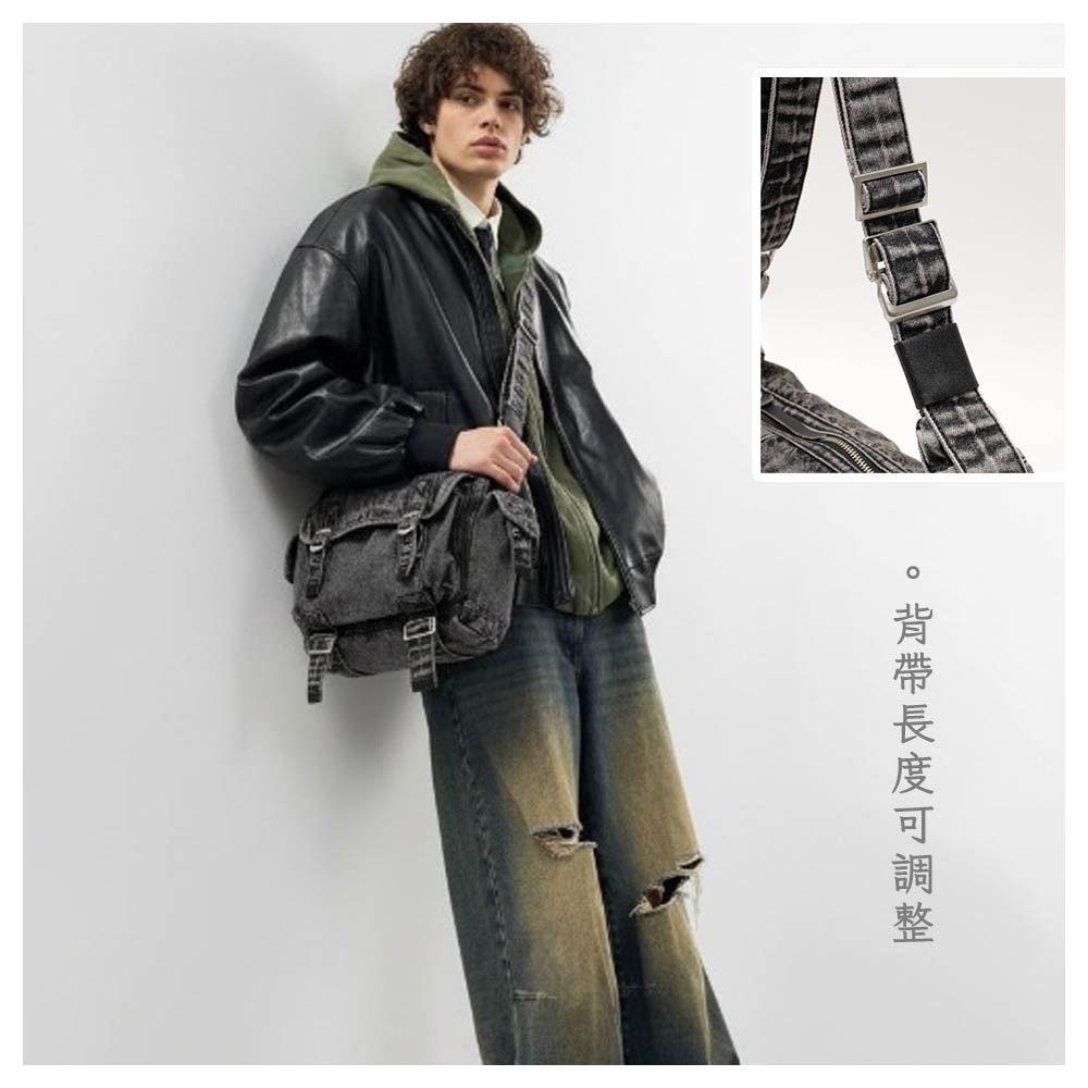 ・這款單肩包採用水洗牛仔布料製成,呈現出迷人的做舊效果。