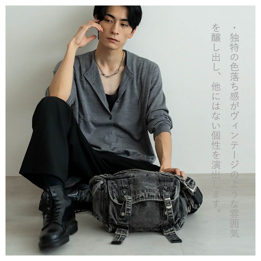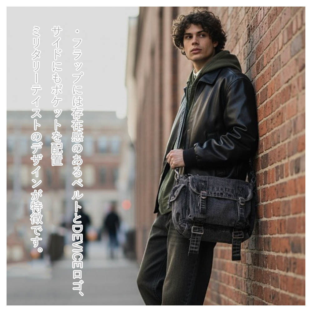 ・翻蓋上飾有醒目的皮帶和 DEVICE 標誌,兩側設有口袋,展現出軍事風格的獨特設計。