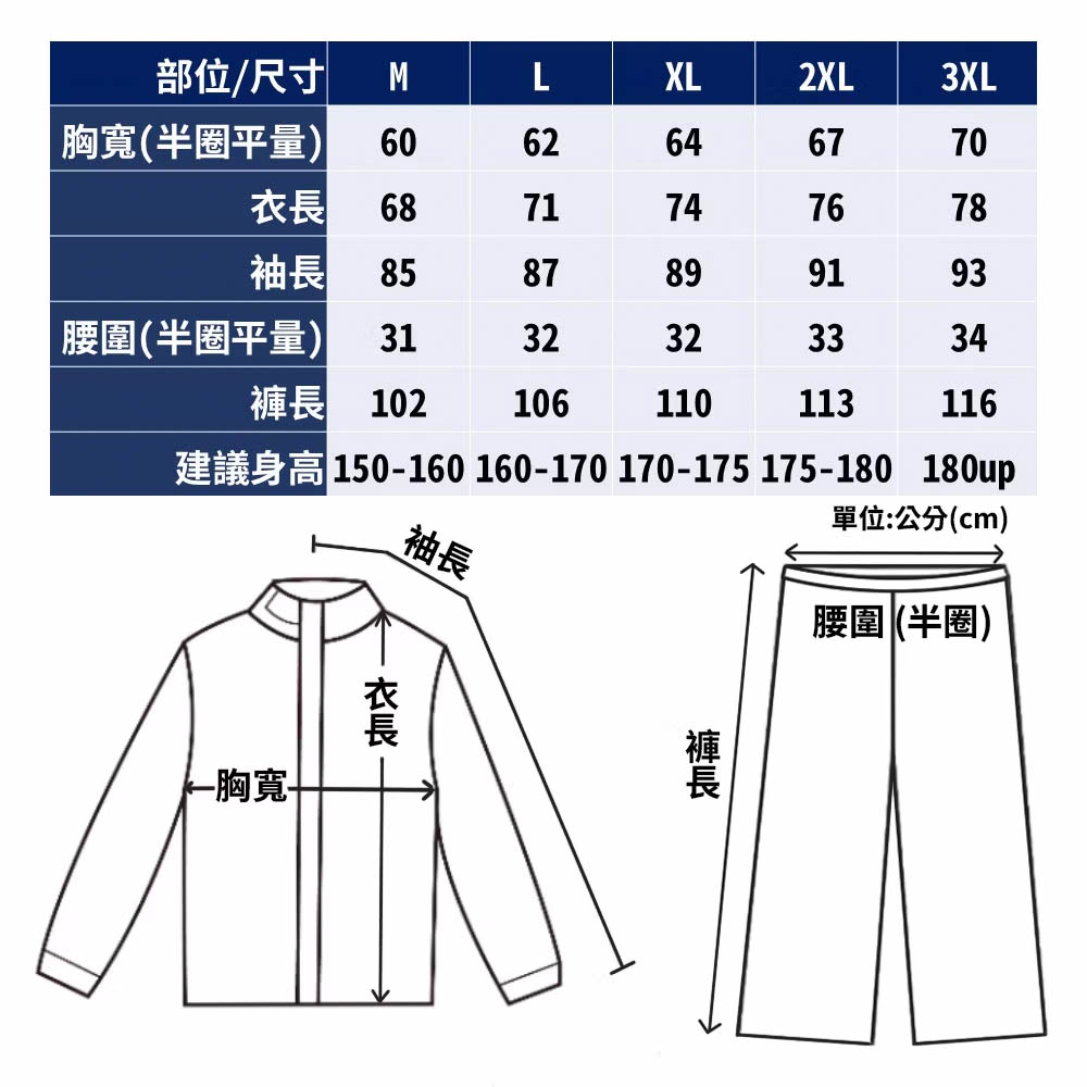 1. 斜開式開襟,防積防滲水2. 雙層反折式防水門襟設計