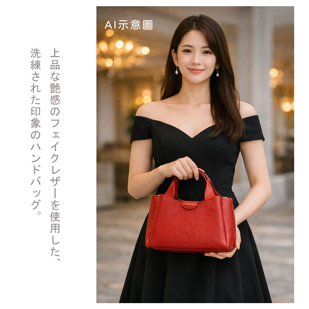 這款精緻的手提包採用高品質仿皮製成,散發著優雅的光澤。