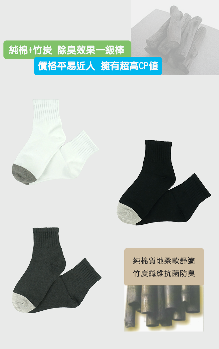 【竹炭消臭系列】舒適1/2襪