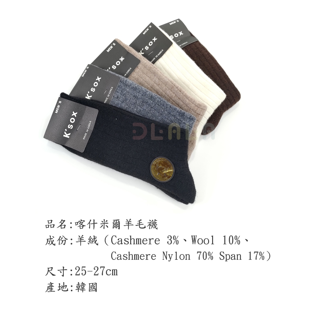 【韓國製】 喀什米爾羊毛 男襪
