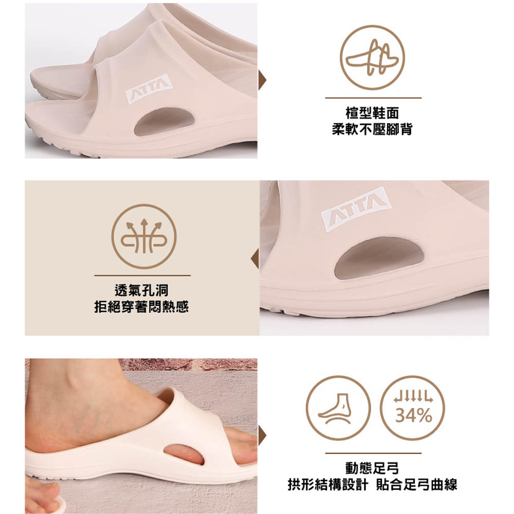 【ATTA】足底均壓 足弓簡約休閒拖鞋(6色)