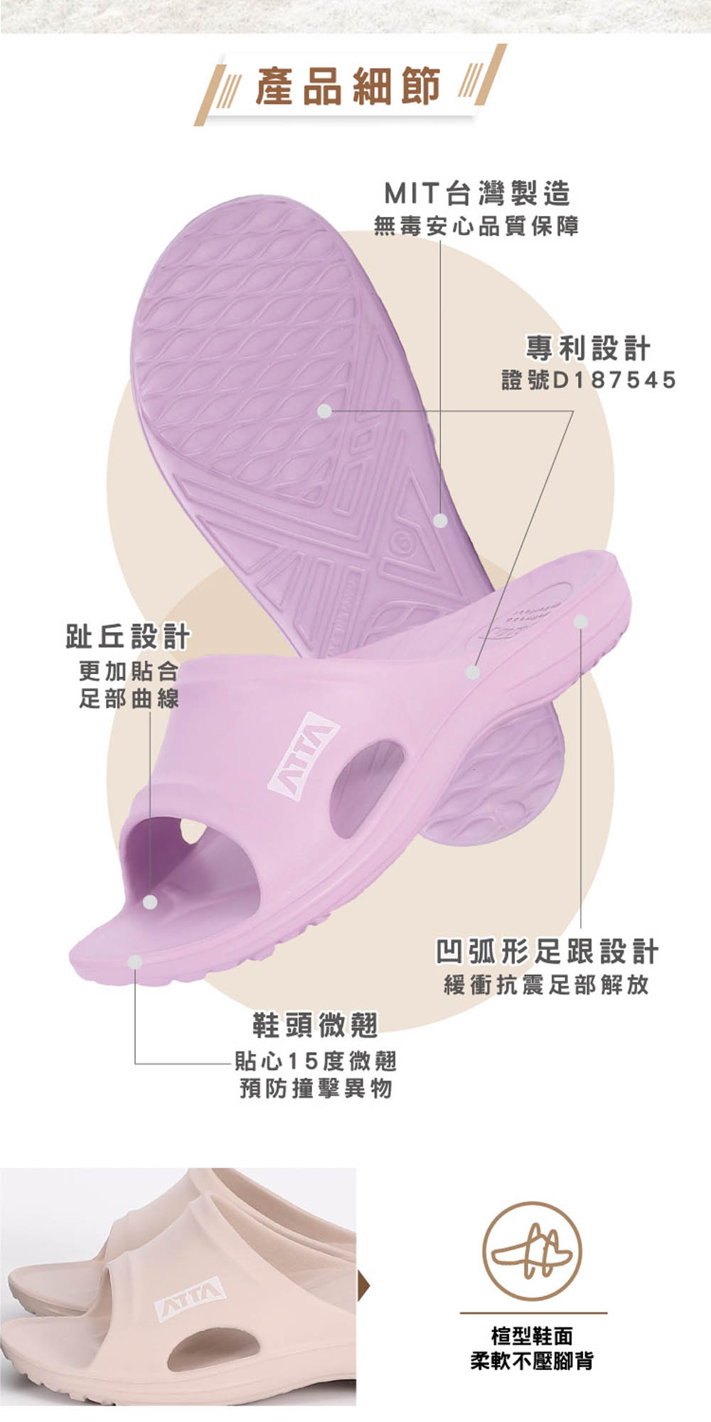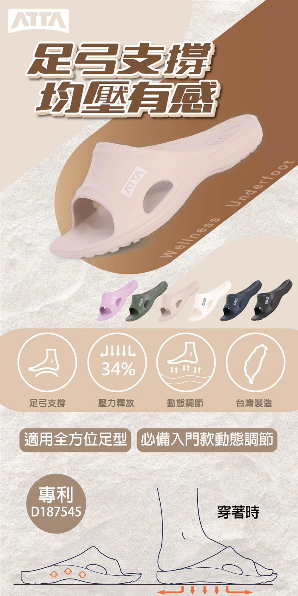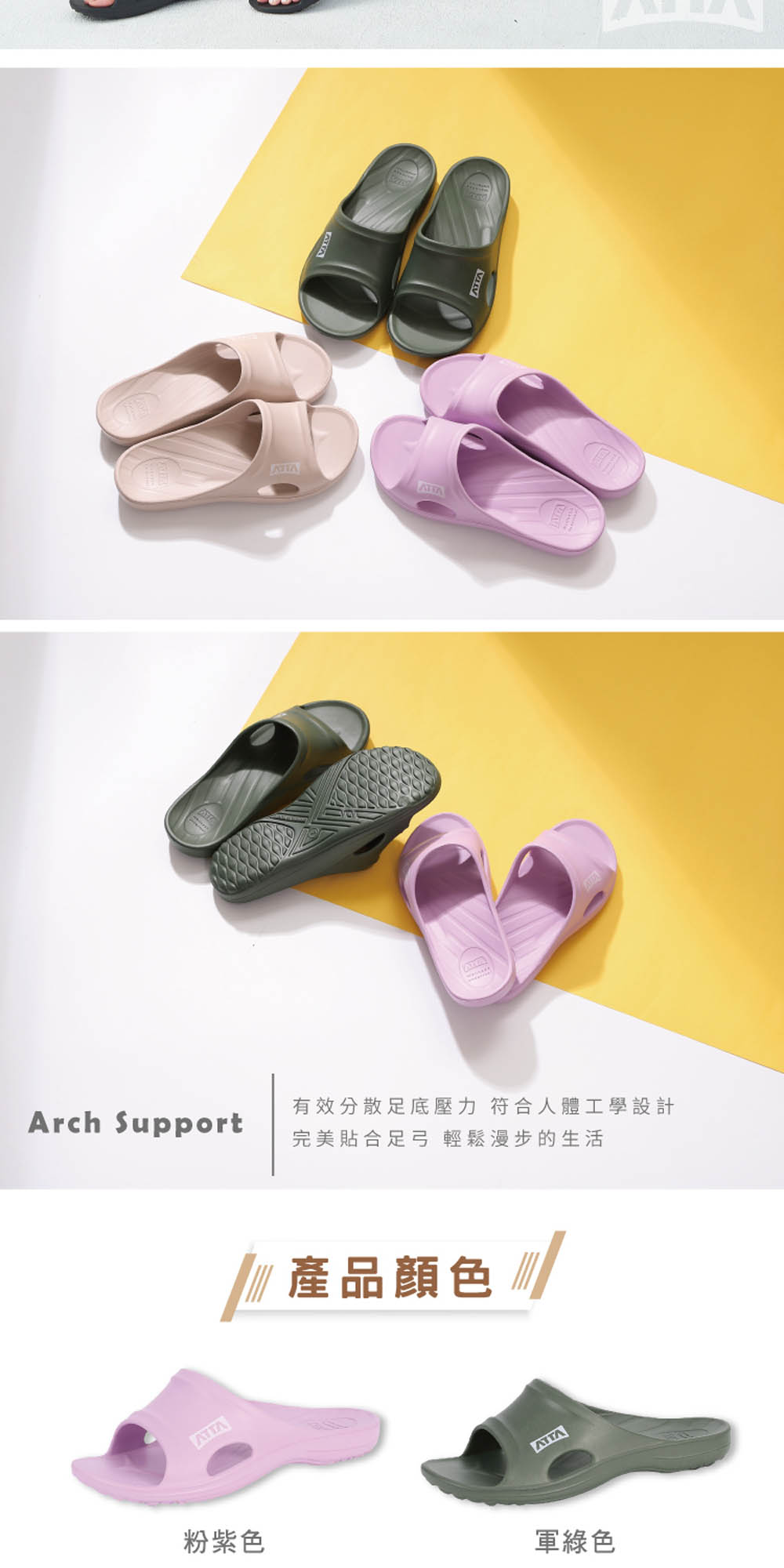 台灣製【ATTA】運動風簡約足弓拖鞋