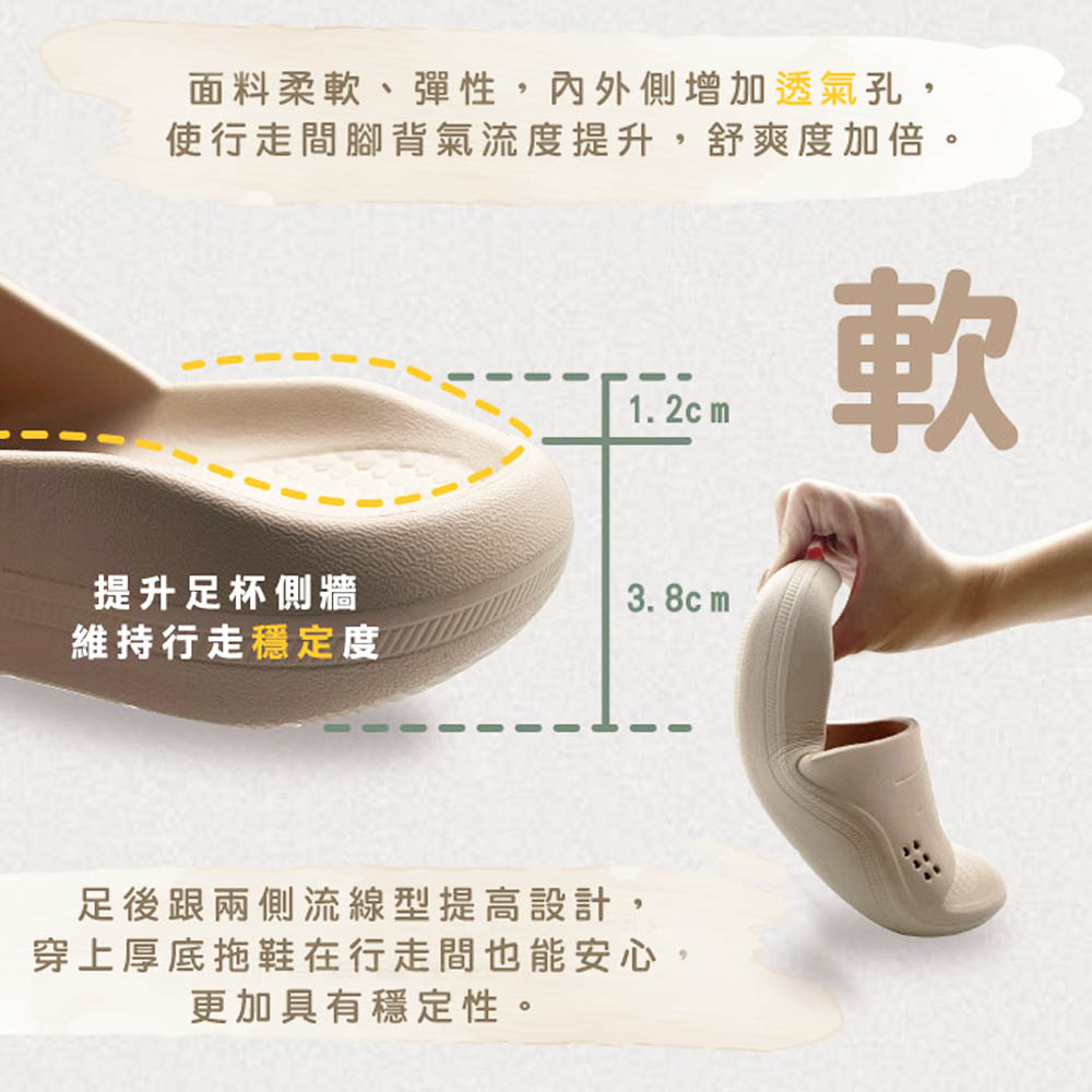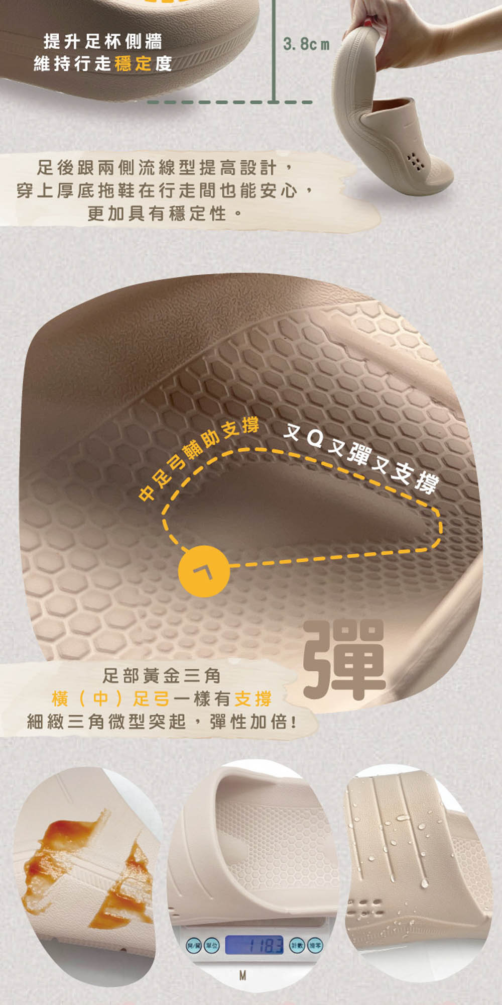 柔軟包覆▶足後跟兩側加高微包覆,用料柔軟超Q彈