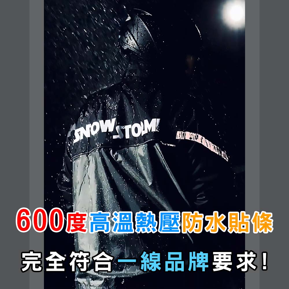防水工藝: 全接縫經600度高溫熱壓貼合防水膠條