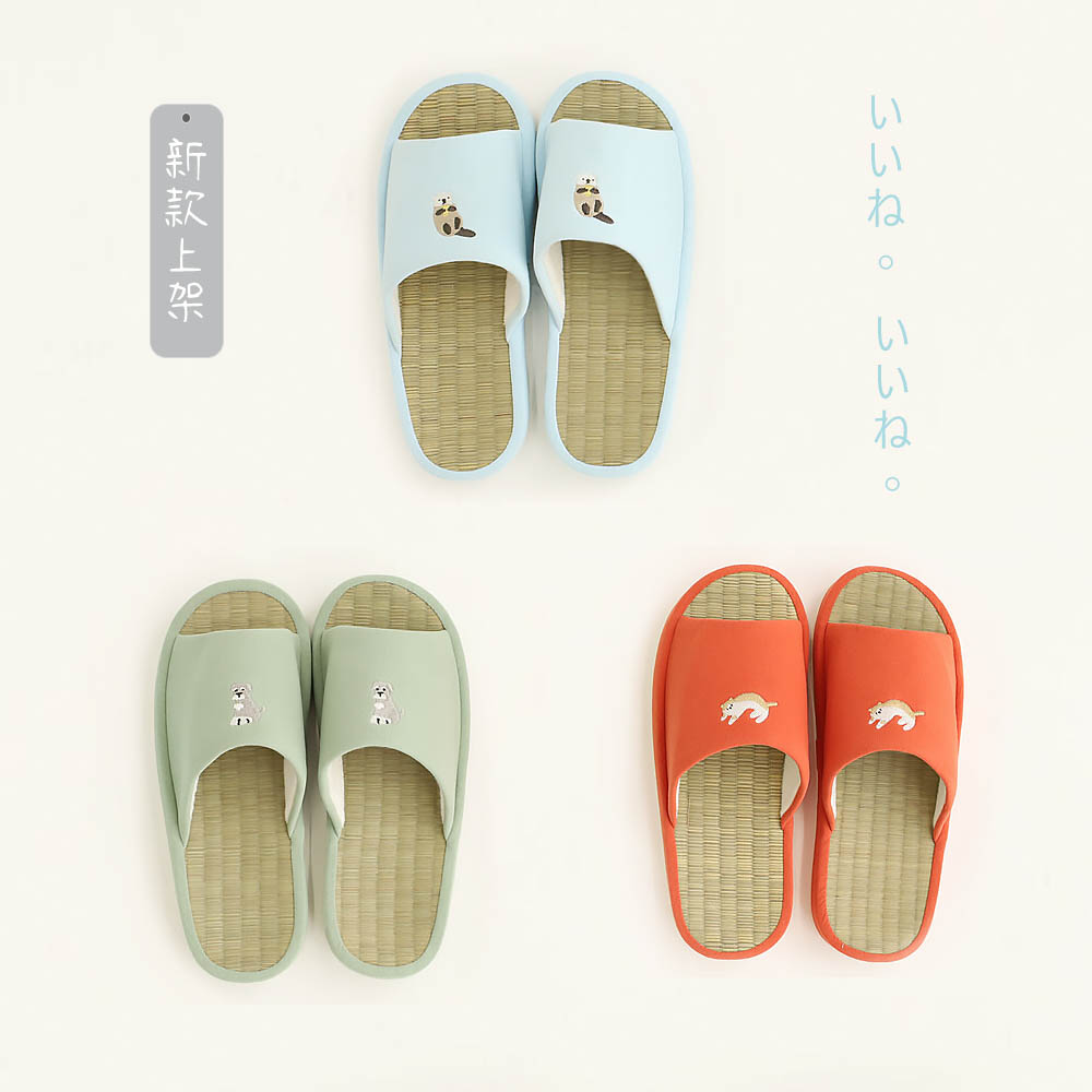 【日本進口】簡約刺繡榻榻米室內拖鞋