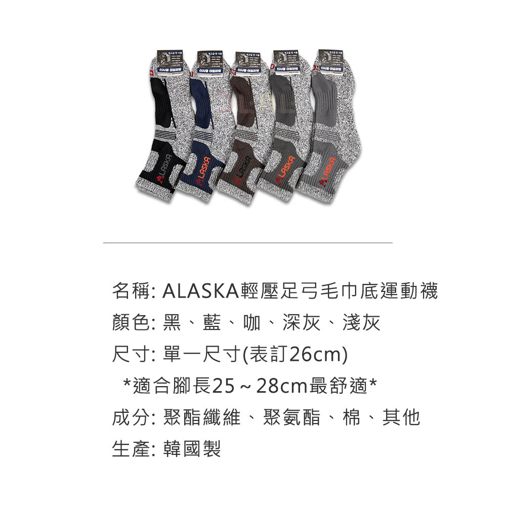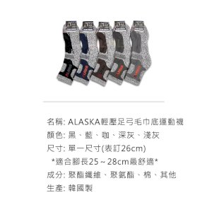 名稱: ALASKA 輕壓足弓毛巾底運動襪