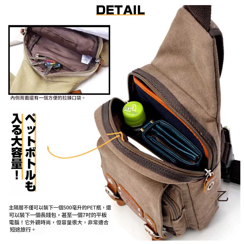 前翻蓋後方的拉鍊口袋可存放貴重物品,側袋則可放置智慧型手機,提供充足的收納空間。