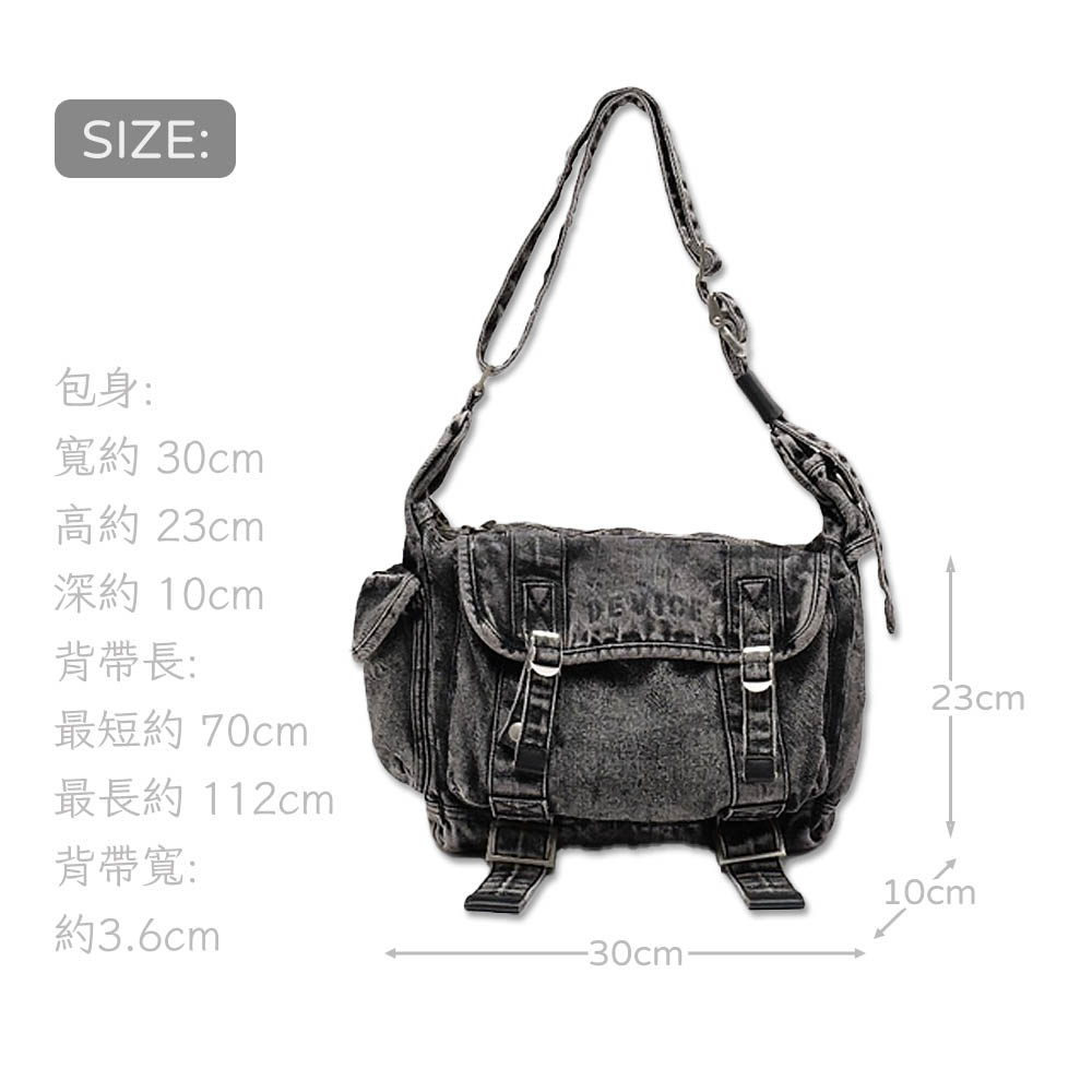 ・這款單肩包採用水洗牛仔布料製成,呈現出迷人的做舊效果。
