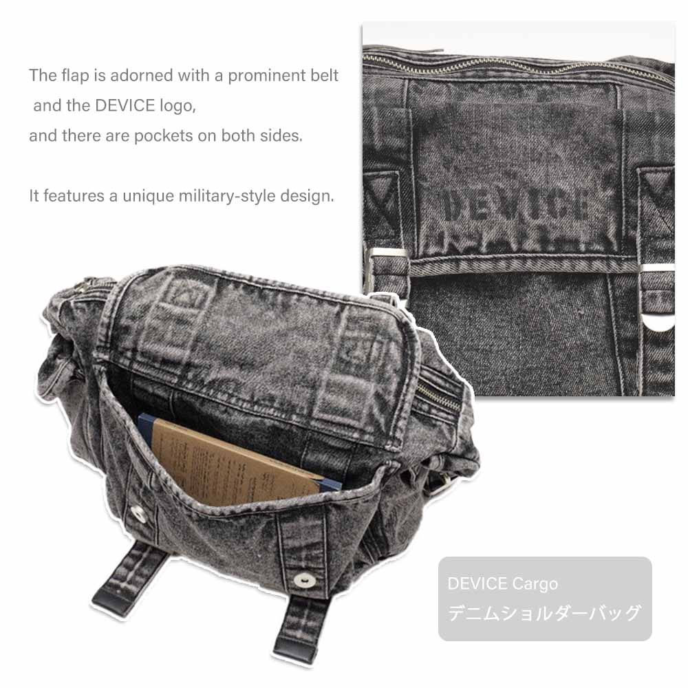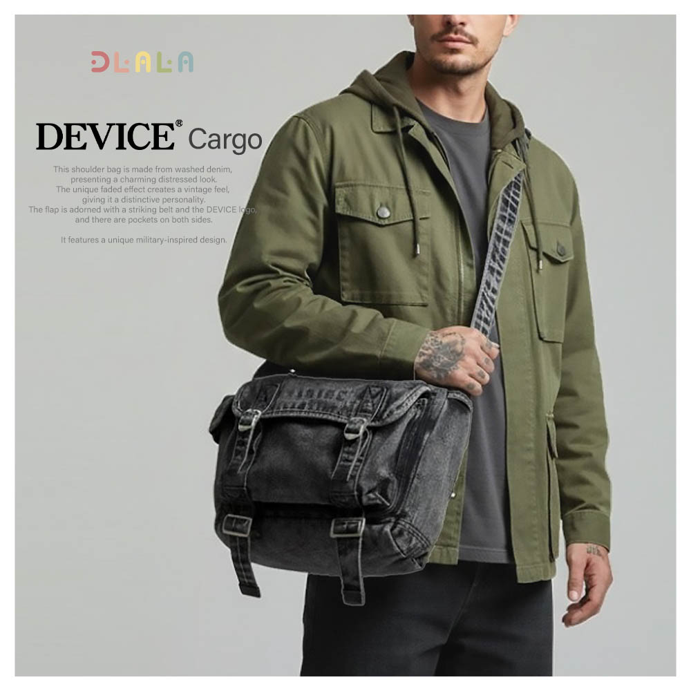 ・翻蓋上飾有醒目的皮帶和 DEVICE 標誌,兩側設有口袋,展現出軍事風格的獨特設計。