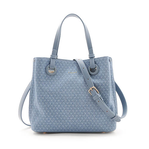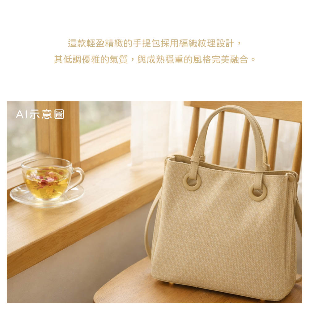 這款輕盈精緻的手提包採用編織紋理設計,