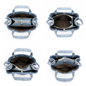 內部設有三個隔層,中央拉鍊開合,前後均採用磁扣,