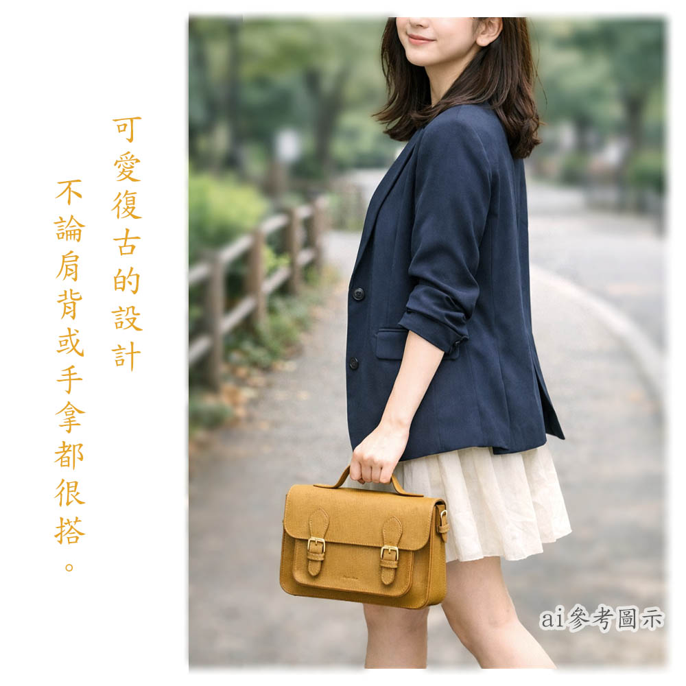 復古風格的單肩斜背包,容量充足,可橫向容納長錢包或500ml PET瓶。
