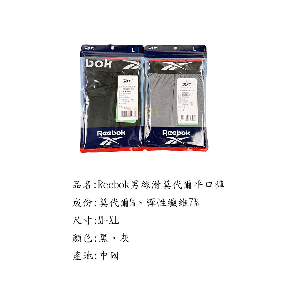 【Reebok】男絲滑莫代爾平口褲(貼身)