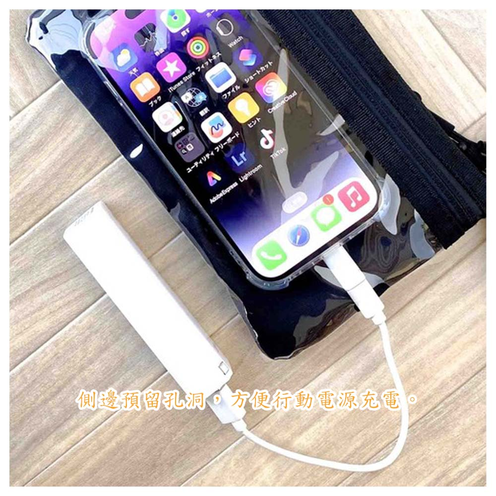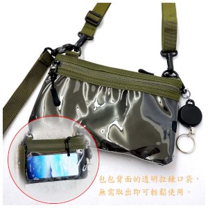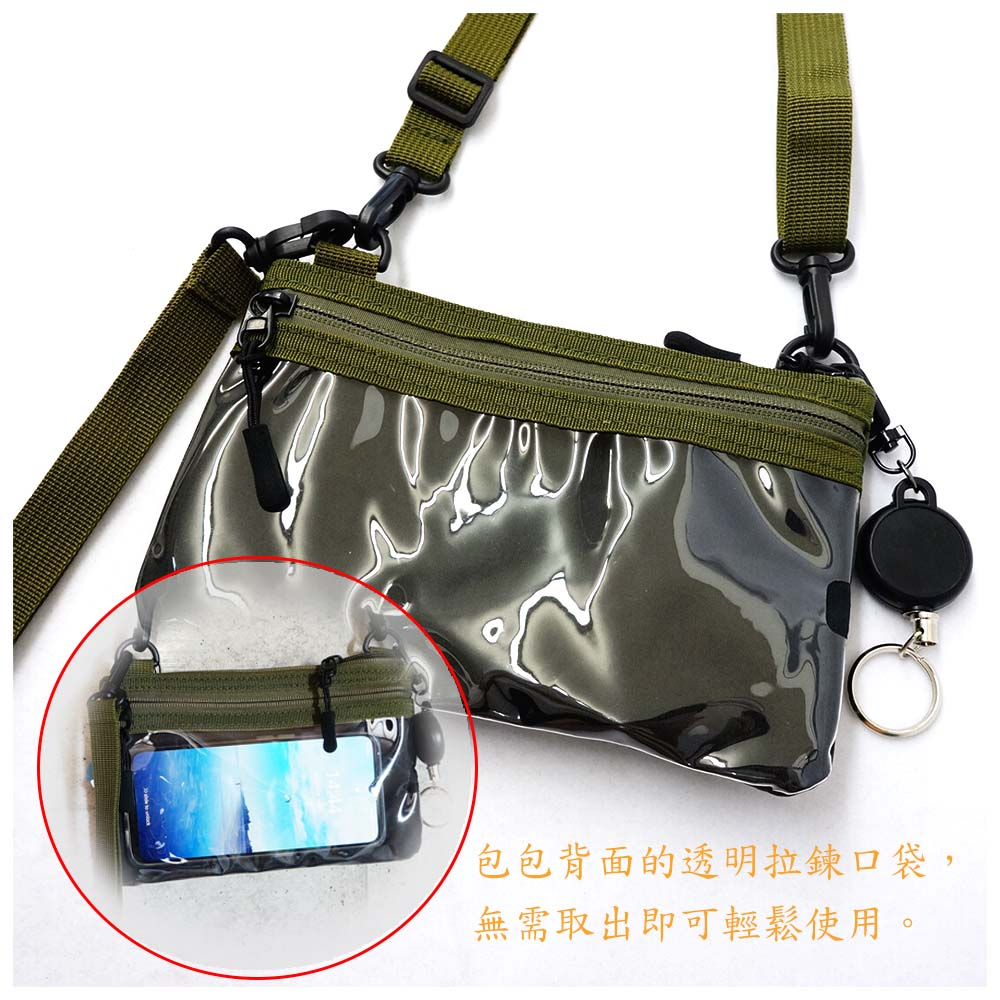 包包背面的透明拉鍊口袋,方便您無需取出手機即可輕鬆使用。