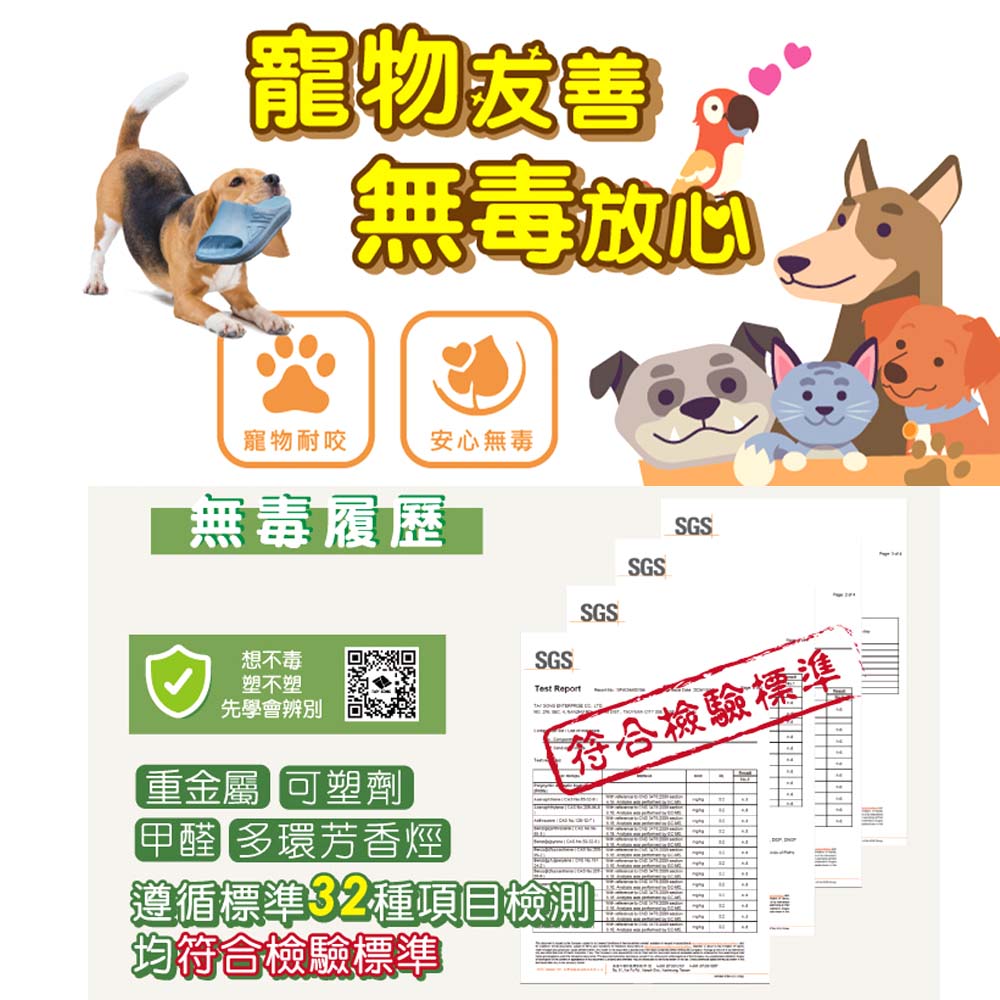 ● 減碳、無毒(通過檢測) 不怕貓狗咬 (不是咬不壞啦☺︎ 是拖鞋"無毒"唷)