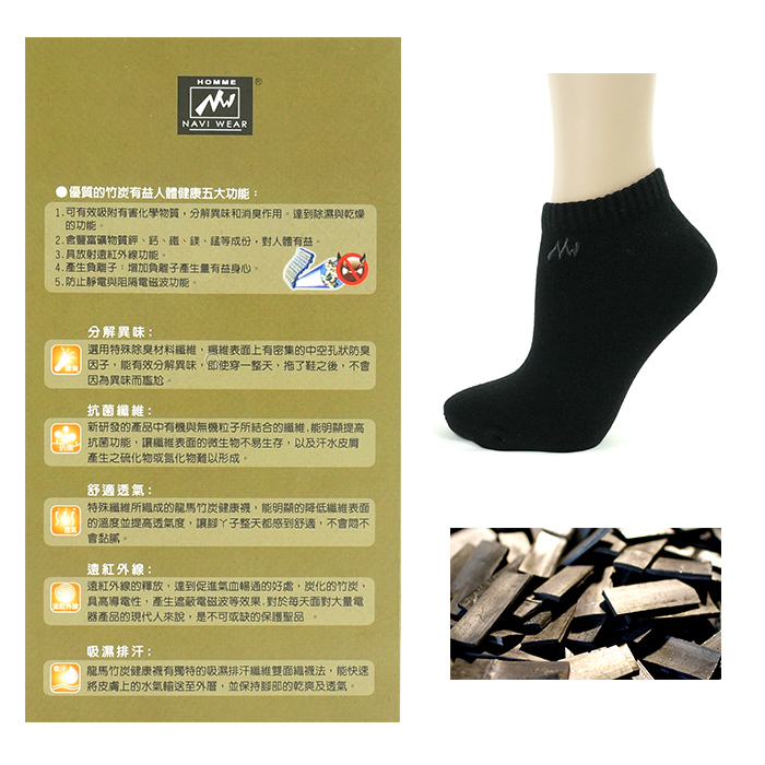 【台灣製】全竹炭抗菌除臭船襪(20-24cm)