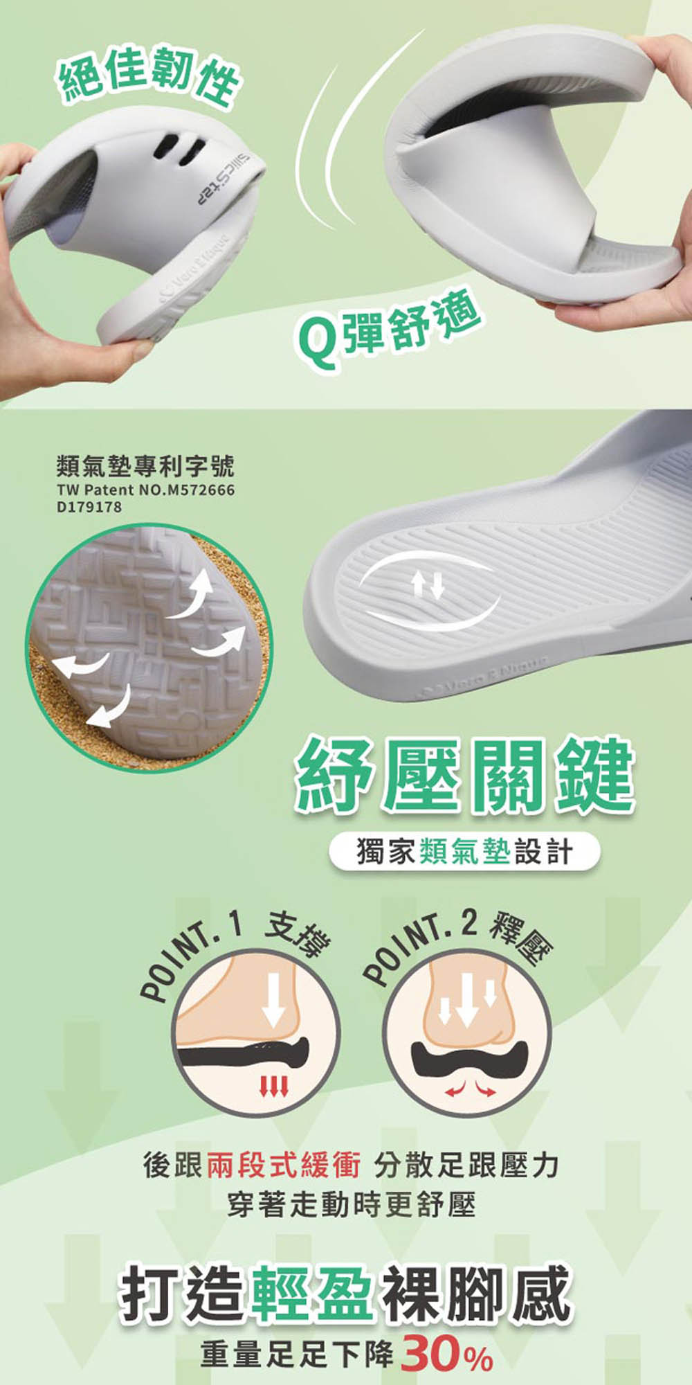 ● 獨家類氣墊設計 分散足壓穿著更紓壓