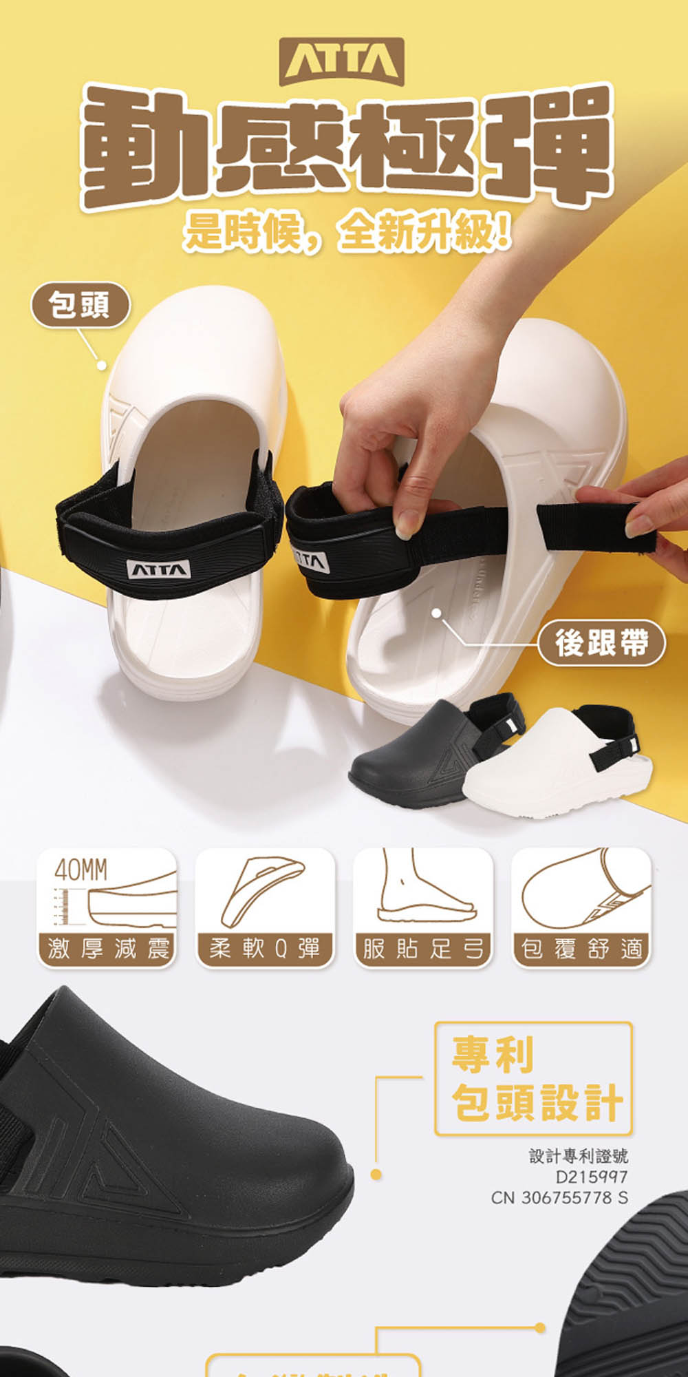 【ATTA】動感極彈包頭室外拖鞋-粉/藍/黑/白 足壓分散/激厚減震/防水厚底/MIT台灣製/原廠公司貨