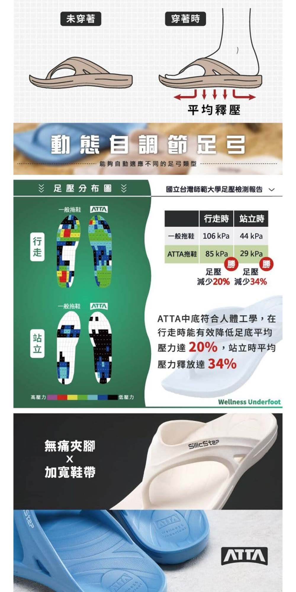 「ATTA」為專注於「足弓支撐」的拖鞋品牌,擁有獨創的 「 動態足弓設計 」 ,